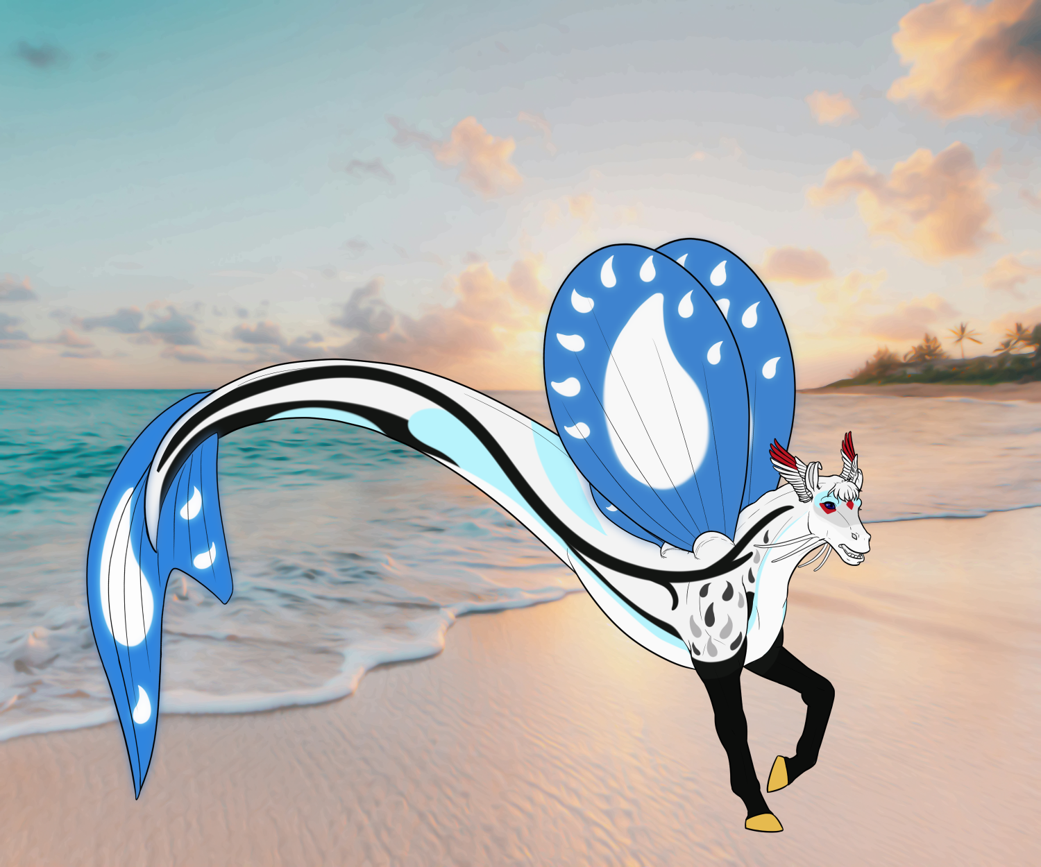 R. Elven Ears, D. Rounded Top Wings, R. Tiny Rounded Bottom Wings, R. Betta Cheeks, D. Ridged Mane, D. Trailing Tail Fin