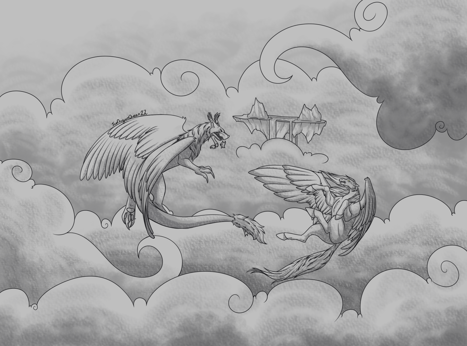 Shaded Sketch for Sehan for the boss fight image of this floor of the Floating Islands for Erid. Tried a few things to keep the shading interesting, nd I think I'm pretty proud of how it came out!