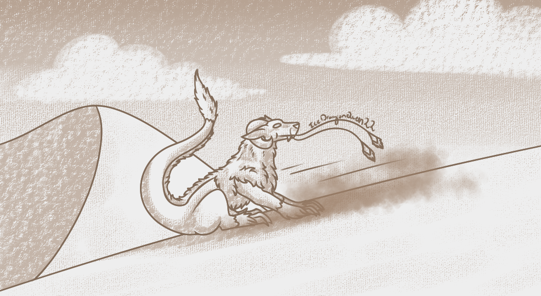 One of the dangers of exploring the desert is... sliding back down the dune you just spent all that time climbing UP! And there he goes. Dune down a dune. Oh hekk.