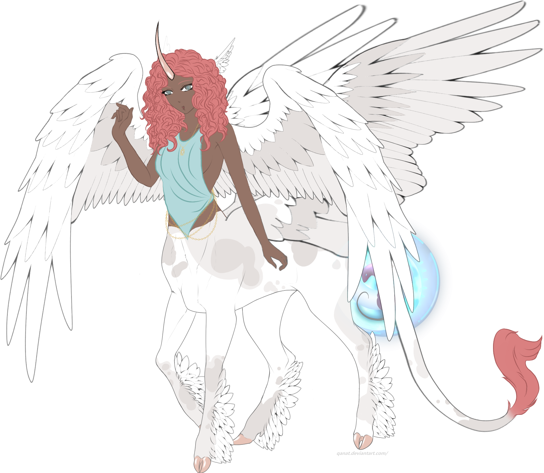 Female Airborn/Pureborn CentaurianBrown Skin, Curly Red Hair, Brown EyesWhite Fur with PaintXX/AB/PB/Brsk/Cu/Rh/Brey/Wf/Pa/MMMutt, Blind