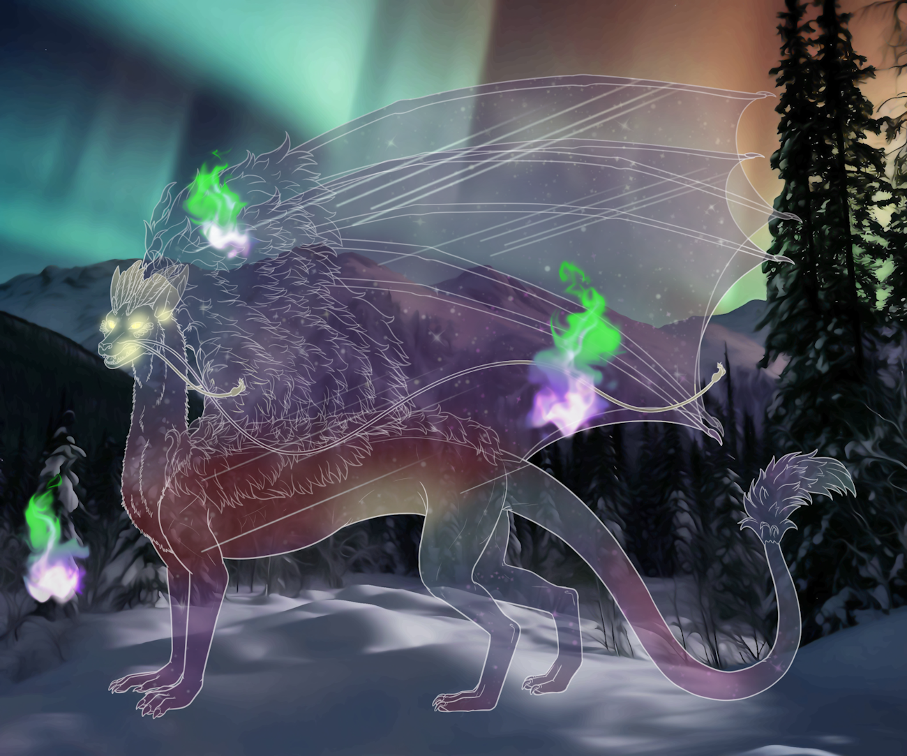 D. Red Fire, D. Spirit Fire, R. Shiny, D. Short Beard, R. Medium Back Fur, R. Feathered Frill, D. Spine, O. Blue Fire, D. Double Whiskers, R. Golden Bones, Keratin Energy, Extra Energy