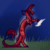 Solemn and quiet, the bass voice that spoke was carried by the chill morning air. It belonged to a tall kijikaiaku, who sat calmly upon the ridge, watching the horizon for dawn's first rays. Variegated pale blue, with eyes of pale yellow, and a splash of black across his forehead, his simple colouring was partially obscured by the dark, ghostly cloak along his back, resting lightly across his long, thick mane and the plating of his body. Pale blue wisps of ...