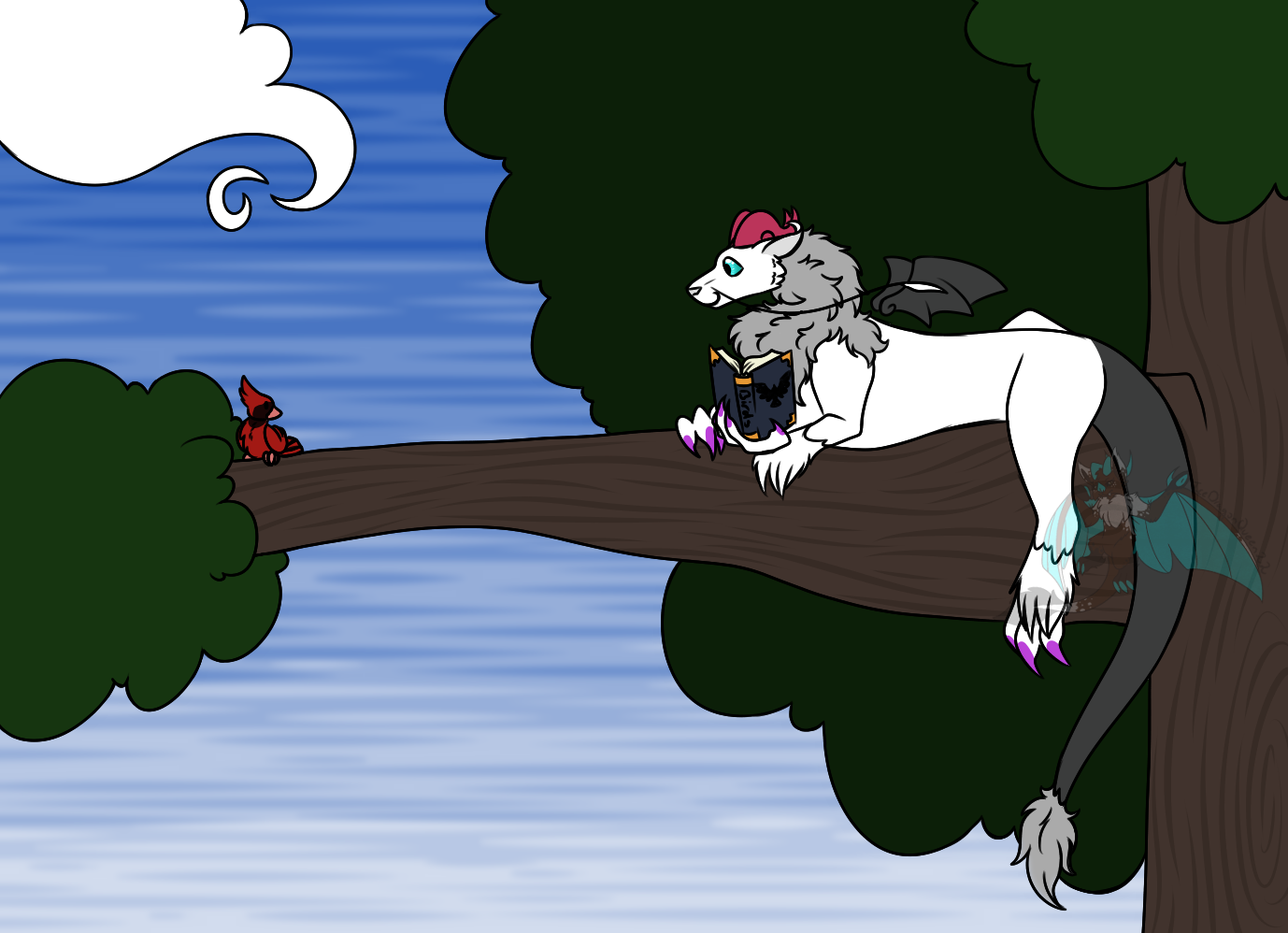 While in the tree, Cecil decided to study one of the nearby birds. Maybe he'll be able to see some of the behaviors explained in his book, in person!