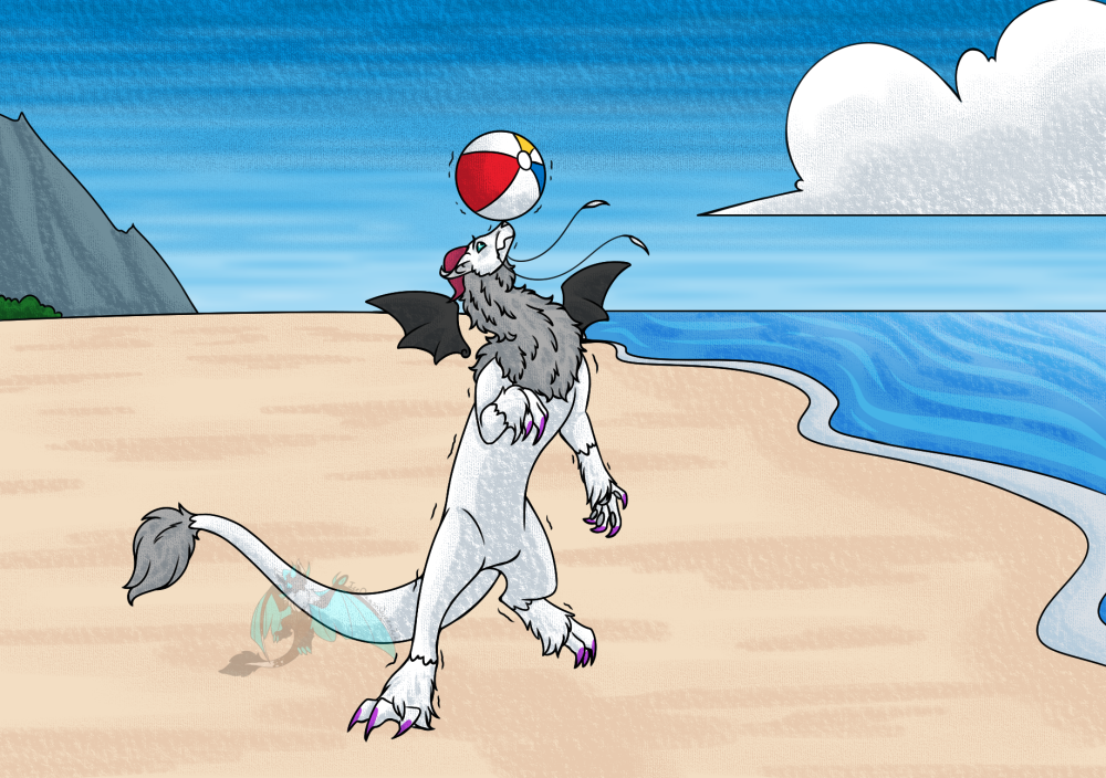 Cecil trying to see how long he can balance a beach ball on his nose. It's... it's going.