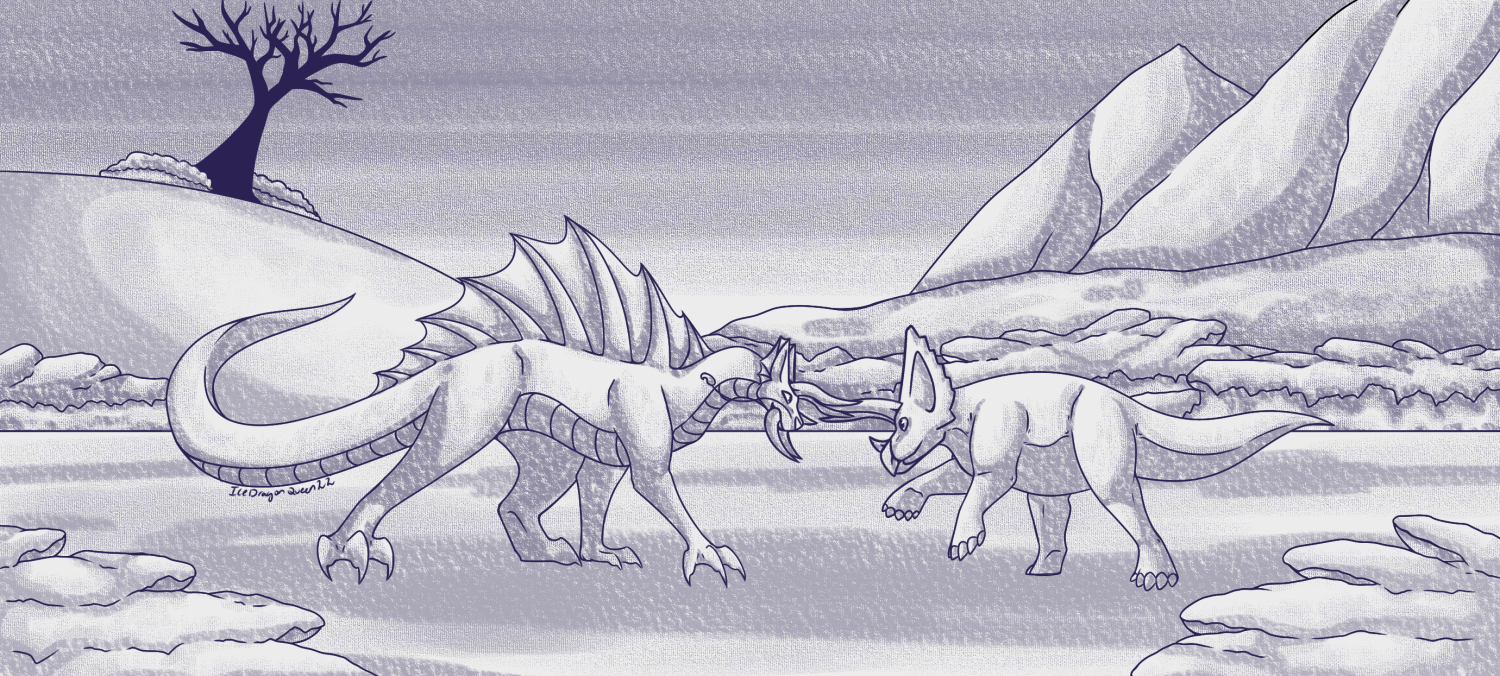 Digon play fighting with his Triceratops in the middle of the bushes.